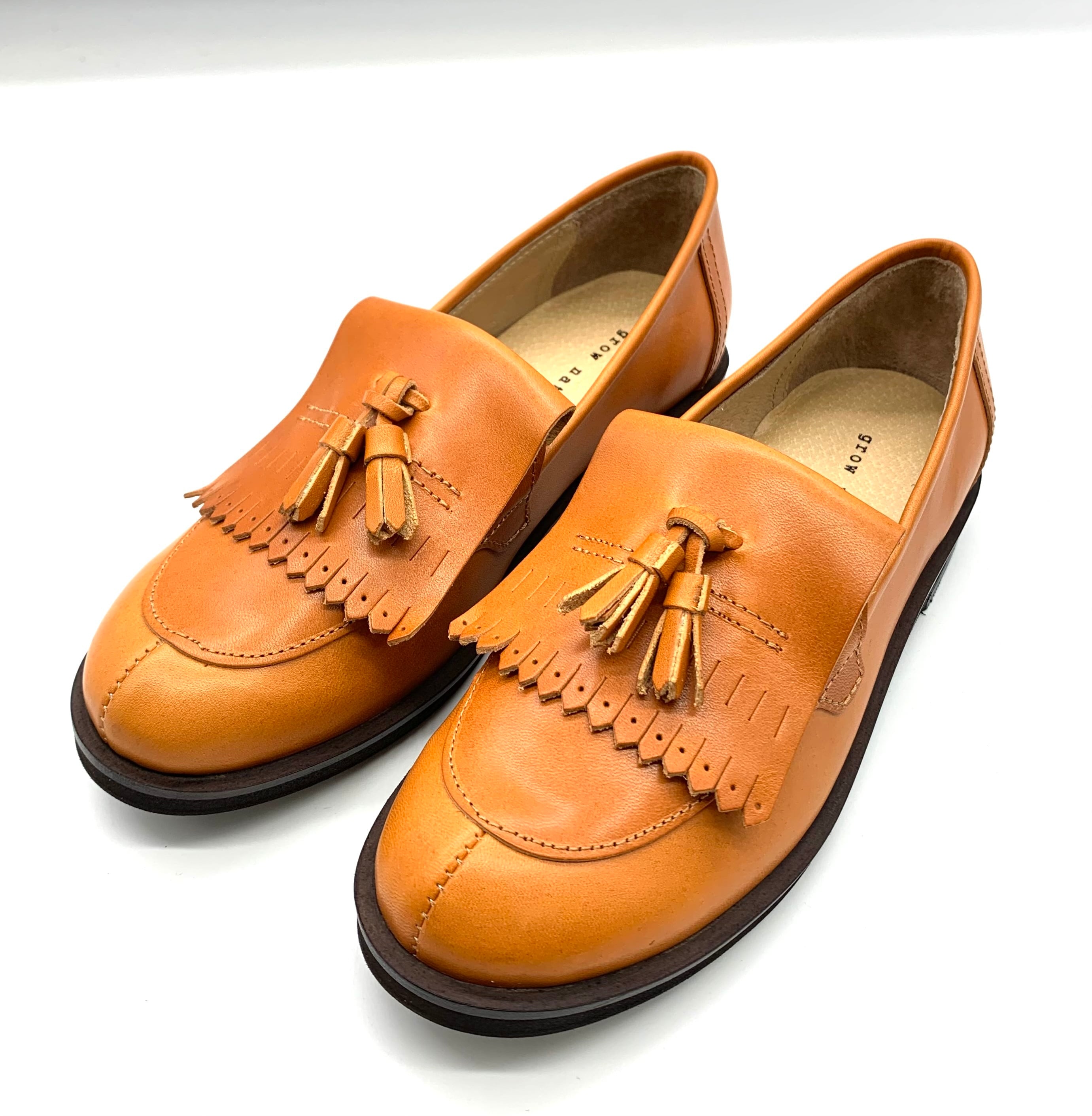 高級感あふれる栃木レザーを使用した、スタイリッシュなキルトタッセルローファーシンプルなデザインながらも、履き心地を重視した作りで、日常のコーディネートにさりげなく華を添えます。上品さとカジュアルさを兼ね備えたこのシューズは、さまざまなシーンでお使いいただけます。